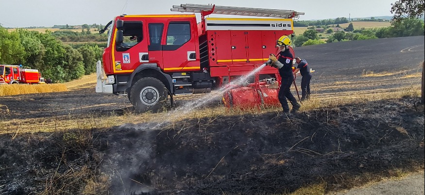 Les fortes chaleurs de ce mardi n'auront pas facilité la tâche des pompiers. Une quinzaine d'entre eux étaient engagés pour maîtriser un feu de récolte à Aubiet, au lieu-dit Bourdieu. Les flammes ont détruit cinq des six hectares que contenait ce champ de blé.