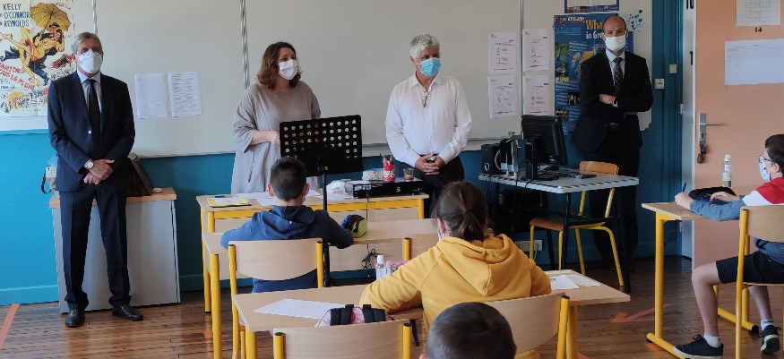 Si le protocole sanitaire a été allégé avec notamment la suppression de la règle de distanciation physique de 4 m2 par élève, quid du port du masque dans les établissements scolaires ? Pour ce qui concerne le 1er degré, le port du masque reste à la marge pour les seules élèves qui en auraient un besoin particulier. Et pour ce qui concerne les collèges et lycées, il reste obligatoire si la distanciation physique de 1m n'est pas possible en classe", souligne Mathieu Blugeon. Témoignage à retrouver dans nos éditions de la soirée.