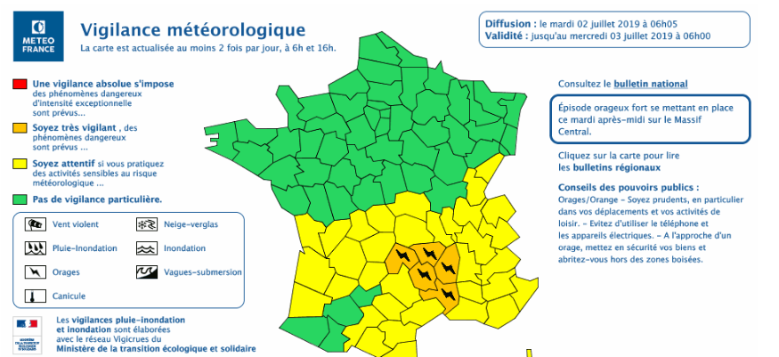 Le 26 juin 2019 à 16 heures, le département du Gers a été placé, par Météo France en alerte de niveau 3