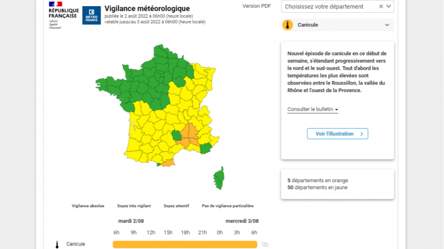 Les départements du Gers, des Hautes-Pyrénées, du Lot-et-Garonne et du Tarn-et-Garonne sont placés aujourd'hui en vigilance jaune pour un risque de canicule. Entre 30 et 34 degrés sont attendus cet après-midi, selon Météo France. Le pic de chaleur est attendu demain, mercredi, avec jusqu'à 37 degrés au mercure.