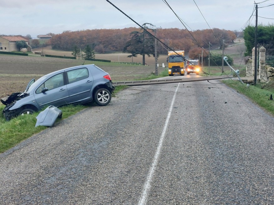 Le véhicule a percuté un poteau téléphonique, privant une vingtaine de foyers d'électricité ce matin à Lectoure. Enedis espère un retour à la normale d'ici la fin de journée.