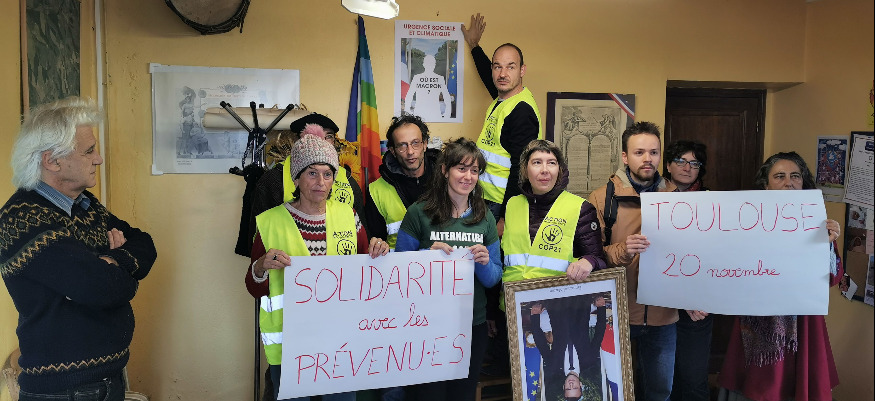 Ils sont repassés à l'action pour la 4e fois en l'espace de quelques mois dans le département. Ce mercredi matin, à la mairie de Lasséran, près d'Auch, une dizaine de militants gersois du collectif « Action-non violente COP 21 » ont décroché le portrait officiel du président de la République. Une action qui s'inscrit dans la mobilisation nationale intitulée « #DécrochonsMacron » qui vise à dénoncer « l'inaction du gouvernement en matière social et climatique ». Un mouvement qui ne cesse de prendre de l'ampleur. Depuis le début de l'année, 133 portraits présidentiels ont été décrochés dans des mairies de toute la France, dont 4 désormais dans le Gers. Avec ce nouveau décrochage, ils ont également souhaité affiché leur soutien à 3 militants toulousains convoqués aujourd'hui au tribunal de grande instance pour « vol en réunion », dans un lieu loin d'être choisi au hasard. « Nous avons choisi de venir à Lasséran (commune de la paix) parce que la mairie prend justement acte de ces questions climatiques. Elle a notamment signé le pacte finance climat (NDLR, lancé en 2017 par Anne Hessel, Jean Jouzel et 500 personnalités et signé en octobre par la municipalité) », précise Emmanuelle, l'une des militantes. Le maire de la bourgade, Michel Soriano, était présent au moment du décrochage. S'il ne cautionne pas cette action en tant que maire, car cela va à l'encontre de l'État, il soutient la démarche des militants en tant que "citoyen", lui qui s'inquiète particulièrement du devenir de notre planète. Son témoignage est à retrouver dans nos éditions de la soirée.