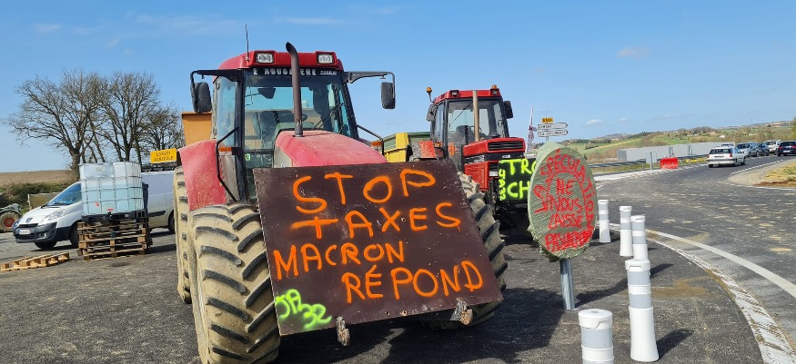 "C'est la goutte de gazole qui fait déborder le réservoir". La fièvre ne retombe pas dans les rangs des agriculteurs gersois face à la flambée des prix du carburant depuis le début de la guerre en Ukraine. Le gazole non-routier (GNR) que consomment les tracteurs et engins agricoles a plus que doublé en un peu moins d'un an. À cela s'ajoute la hausse de nombreuses matières premières (hausse des engrais, de l'énergie et des aliments pour animaux, des matériels, etc..). Un contexte qui pousse les jeunes agriculteurs gersois, très inquiets pour leur avenir, à sortir dans la rue depuis plusieurs jours. Après avoir occupé depuis vendredi le rond-point de la Guérite à Gimont, bloqué la rocade de Gimont ce lundi 21 mars, ils ont décidé de passer à la vitesse supérieure et de se rendre en nombre dans la capitale gersoise ce mardi matin à bord de leurs tracteurs et engins agricoles. Une délégation sera reçue à la mi-journée par le Préfet Xavier Brunetière pour une "réunion de travail". Un rendez-vous très attendu par Xavier Duffau, président des Jeunes Agriculteurs du Gers, qui a été particulièrement déçu par les dernières annonces gouvernementales dans le cadre du Plan de résilence.