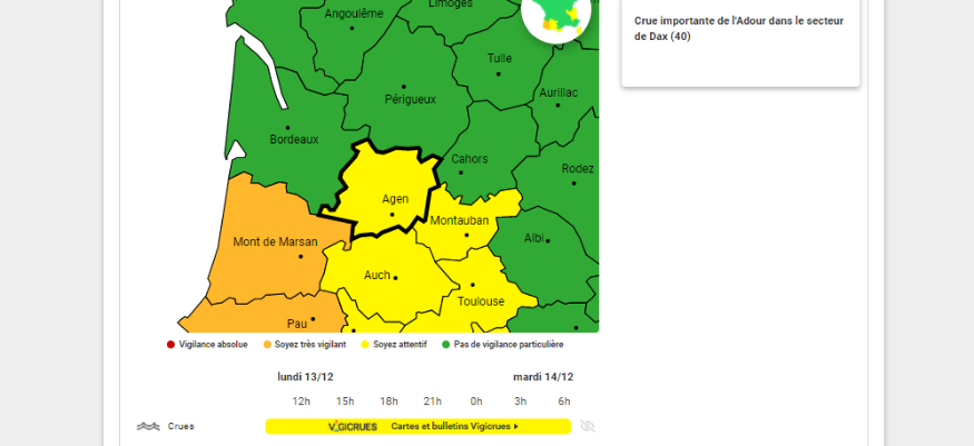 Nord-Gascogne : Vigilance jaune crues, les niveaux d'eau redescendent lentement
