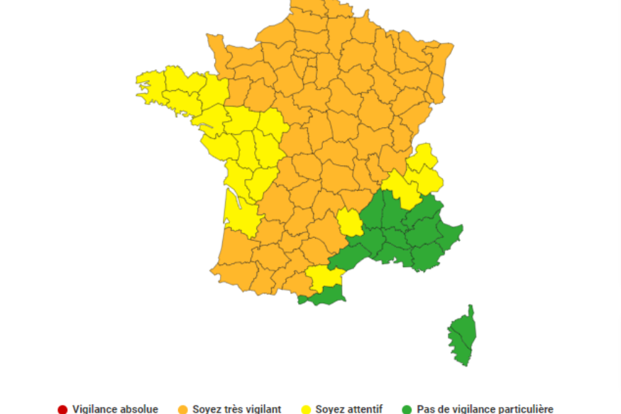 Une très forte activité orageuse est prévue cet après-midi, ce soir et la nuit prochaine sur une grande partie du pays. Sont attendues par endroits des pluies intenses, de fortes chutes de grêle et de violentes rafales de vent. 65 départements en orange Cet après-midi, des orages parfois violents vont se développer sur les Pays de Loire, la Normandie, l'Ile de France, le Massif Central et le sud-ouest du pays. Ils gagneront le Centre, la Bourgogne, la Lorraine, la Champagne, les Hauts de France et l'Alsace dans la soirée. Ces orages seront accompagnés de pluies intenses (localement 40 à 60 mm en peu de......