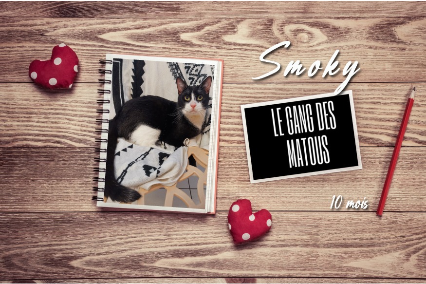 La mère de Smoky était une chatte errante en gestation, elle a été récupérée par l'association et placée en famille d'accueil afin de pouvoir mettre bas en toute tranquillité. Après le sevrage des chatons, elle a été mise en règle avant d'être relâchée sur site. Smoky a eu quelques galères plus jeune, il a également changé quelque fois de famille d'accueil depuis sa naissance mais ce qu'il voudrait désormais c'est SA famille à lui. ???? Parlons de lui : C'est un chat très sociable et avenant. Sans filtre, il est collant et maladroit.......