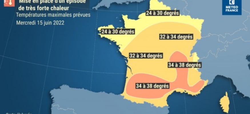 Une vague de chaleur se met en place à partir de mercredi jusqu'au week-end. Elle commencera par concerner le sud du pays. Le pic d'intensité de cet épisode est attendu entre jeudi et samedi avec le mercure qui pourrait même frôler les 40 °C localement.