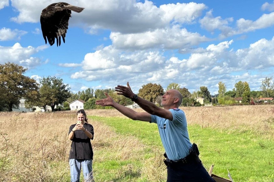 Gers : sauvé par des gendarmes de Riscle, un aigle retrouve sa liberté après plusieurs semaines de soins
