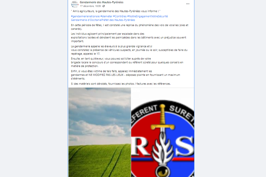 Hautes-Pyrénées : La gendarmerie alerte les éleveurs sur des vols de volailles