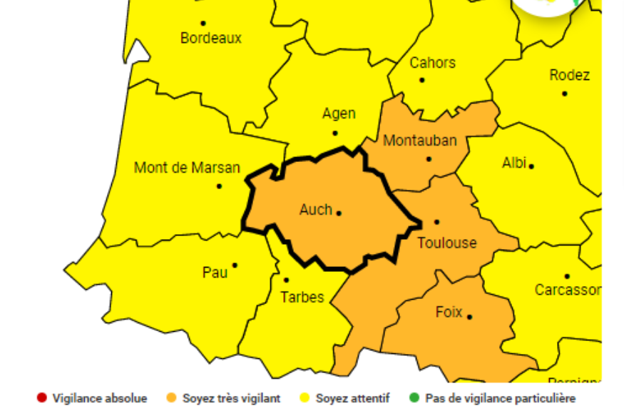 Météo France a placé le Gers en vigilance orange pour un risque de pluie et d'orages dans le département, ce jeudi. L'alerte s'établit de 15 heures à 3 heures, cette nuit. C'est la deuxième fois en 24 heures que le Gers est concerné par une alerte météo. Si le département a été bien plus épargné que son voisin lot-et-garonnais cette nuit, les pompiers ont effectué 11 interventions en lien avec la météo capricieuse, principalement pour des assèchements et un bâchage. Selon le site spécialisé Keraunos, la foudre a frappé le Gers......