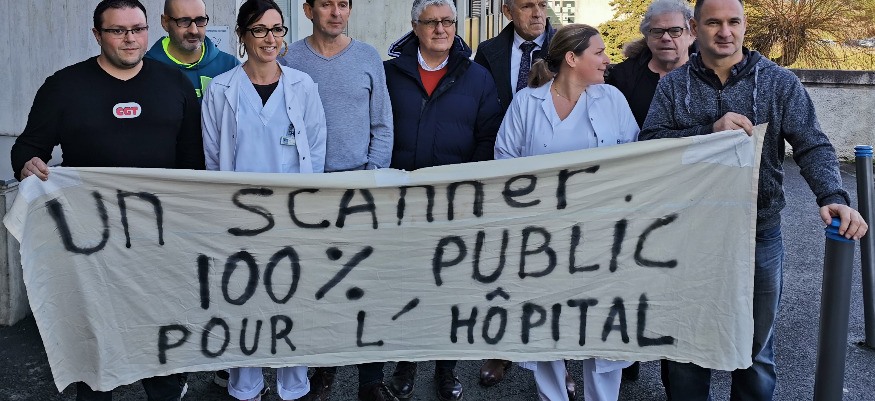 La mobilisation ne cesse de grandir et de prendre de l'ampleur pour sauver le scanner de l'hôpital d'Auch, en surcis d'ici l'été prochain, à cause d'un conflit d'intéret avec un membre du GIE, qui s'oppose au renouvellement de la machine, pourtant en fin de vie. Après le coup de gueule du maire d'Auch, Christian Laprébende, la sortie publique de la directrice de l'établissement, Sylvie Laccariere, les manips radio en grève depuis plusieurs semaines pour exiger un nouveau scanner 100% public ont pu recevoir un nouveau soutien de taille dans leur combat : celui du président du département, Philippe Martin. Il s'est entretenu en début d'après-midi dans les locaux de l'hôpital, avec la communauté médicale, les représentants des usagers, le maire d'Auch et président du conseil de surveillance de l'établissement Christian Laprébende et les représentants de la CGT Santé. Venu écouter et poser des questions pour connaitre tous les tenants et les aboutissants de cette situation, il s'est montré sidéré par certains aspects du dossier. Sur notre antenne, ce soir, il appelle l'Agence Régionale de Santé à prendre ses responsabilités. "On ne peut plus attendre, on a besoin de lisibilité et de visibilité et d'une ARS qui nous permettent de décider et d'avancer pour avoir une imagerie médicale et un scanner, comme il faudrait l'avoir dans un hôpital comme celui d'Auch ". Son témoignage est à retrouver en intégralité dans nos éditions de la soirée.
