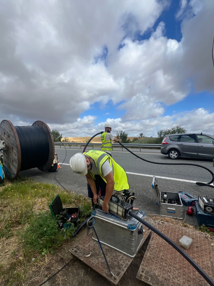 “C'est aujourd'hui une étape importante et surtout une opération hors-normes. On va souffler la fibre sur six kilomètres de long dans des fourreaux qui ont été posés par le département, en anticipation de la fibre, quand cette 2*2 voies a été construite. On a déjà pensé qu'un jour qu'il fallait que ça serve à la Fibre et qu'on est pas à refaire des travaux sur des travaux, et à dépenser de l'argent public de manière exagérée. Comme on est sur un très long tronçon, le long de la 2*2 voies, on ne pousse pas la fibre comme on le fait partout ailleurs sur nos 14 000 kilomètres de réseau que nous aurons construit. Sur ces six kilomètres, la fibre va être soufflée. Et donc elle va parcourir ses six kilomètres en lévitation dans le fourreau grâce à un engin pneumatique mobilisé par l'entreprise toulousaine SEVA. Cette opération est prévue pour durer au moins 48h.”