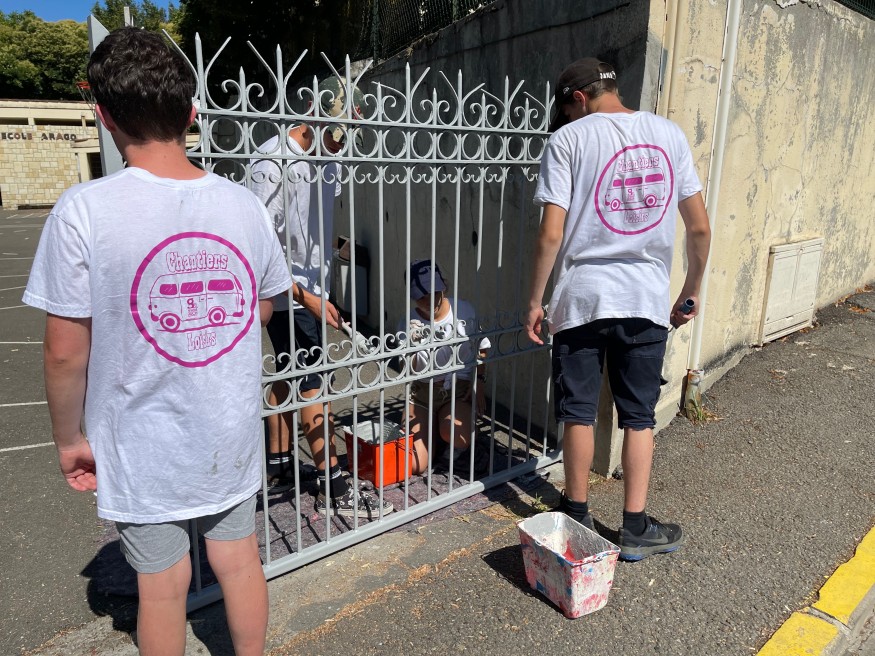 Les participants sont sous la houlette d’une quinzaine d’animateurs et de saisonniers. Ils sont là pour superviser mais c’est aussi à travers eux que passe la bonne ambiance et la cohésion. Pour renforcer le groupe, ils ont créé des tee-shirts floqués “ chantier loisir “. Ça renforce l’implication des adolescents qui rénovent l’espace public pour le bien-être des habitants. L’idée, c’est qu’ils se retrouvent ensemble. Ils construisent avec d’autres jeunes qu’ils ne connaissent pas. C’est très important de travailler dans une ambiance conviviale.