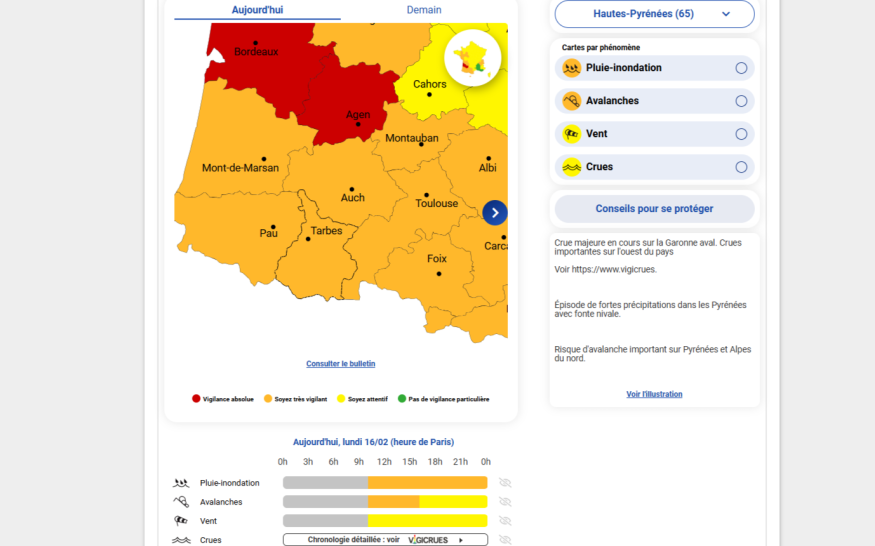 La préfecture des Hautes-Pyrénées fait le point ce lundi sur les intempéries avec des vigilances orange en cours concernant les risques d'avalanches et d'inondations. Plusieurs mesures de précautions sont recommandées.