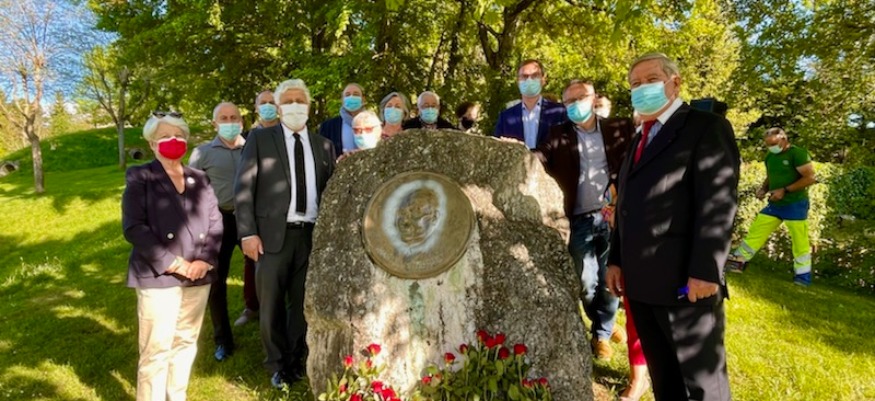 Ce soir des élus socialistes Gersois dont Gisèle Biemouret, Philippe Martin, Hélène Rozis Le Breton et Philippe Dupouy (conseil.dep.), Yvon Montané (ancien député), Michael Aurora ont déposé des gerbes de fleurs sur la stèle Françcois Mitterrand à Mauvezin.
