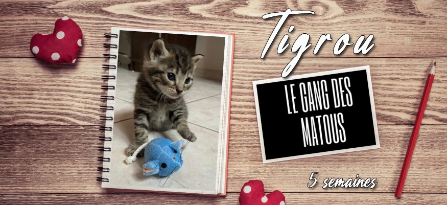• Tigrou, l'aîné de la portée est joueur et câlin, il aime beaucoup manger les orteils et jouer avec sa souris bleue, adepte de câlin, il réclamera votre attention si vous faites le premier pas.