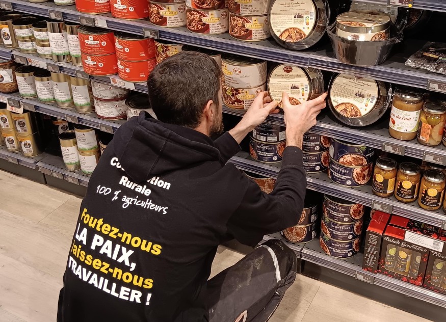 C'est un Lionel Candelon un poil agacé qui attaque sa tournée des grandes surfaces auscitaines. Ses collègues agriculteurs n'ont pas fait le déplacement au Grand Chêne, le laissant seul face aux étaux. « Quand vous avez des agriculteurs qui se sont soumis à tout ce qui leur arrive et qui sont résignés chez eux, c'est très difficile de faire remonter leurs effectifs. Il n'y a qu'en bougeant que les gens sortiront de leurs exploitations ». Le président de la Coordination Rurale du Gers entame à Intermarché son contrôle des rayons viande, avec l'objectif de traquer les produits extra-hexagonaux qui joueraient les passagers clandestins dans les bacs IGP. Ici, dans un cassoulet préparé, des manchons de canard « origine U.E. », là, au milieu d'un étal épars de viande d'agneau, un ovin d'outre-manche égaré.