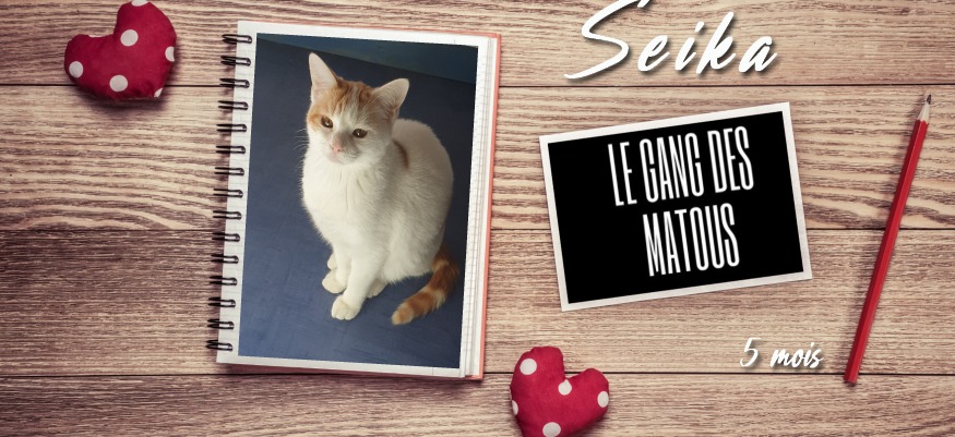 Seika est une petite chatonne de 5 mois environ. Elle a été récupérée après maintes tentatives dans le jardin d'un particulier qui se retrouve envahi de chats errants. Devant cette situation, le gang des matous a décidé de lui venir en aide, en récupérant les derniers chatons et en faisant stériliser les mamans. 3 des 4 chatons récupérés ont trouvé une famille et 2 mamans ont été stérilisées. Reste Seika qui est restée dehors plus longtemps et qui a son arrivée s'est montrée très craintive. Elle a pourtant été adoptée une première fois mais est revenue d adoption car la famille n'avait pas mesuré la patience que demande un chaton craintif. Seika est une adorable ronronneuse quand elle est en confiance, elle aime rester collée à vous, au chaud, toute la nuit et n'oubliera pas de venir vous réclamer des caresses. Vous l'aurez compris, elle garde cette méfiance qui fait qu'elle est encore fuyante quand elle n'a pas choisi le moment. Il faudra donc un environnement calme et adapté : sans enfant et avec un copain sociable et joueur car elle adore ses compagnons félins.